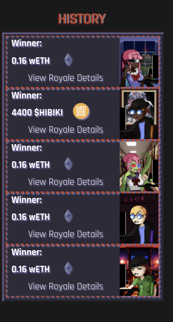 Once a Battle Royale is executed and settled, it will appear in the history, at the right side of the screen: